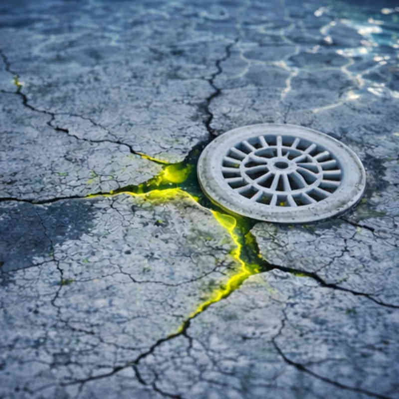 - Les fissures dans le béton ou les perforations dans le vinyle